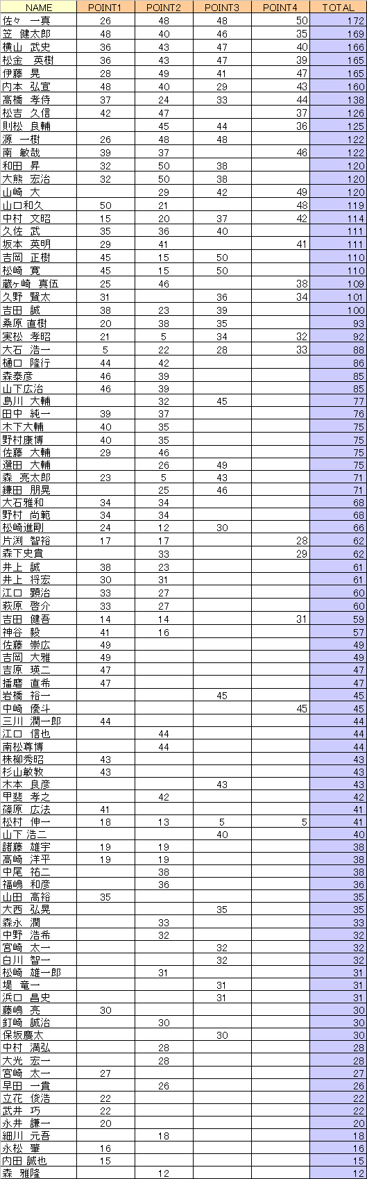 2011GBツアー 年間ポイント