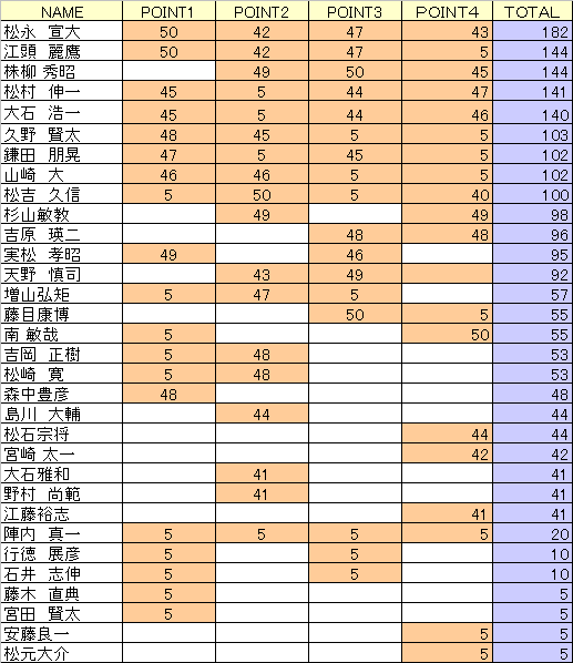 2015シリーズの年間ポイントランキング です。