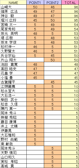 2016シリーズの 2戦終了時点での年間ポイントランキング です。