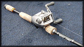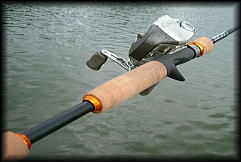 軽く曲げてみると硬く張りのある感じで、通常のファーストアクション位置より若干後方にテイップのカーブピークの始まりが有り、負荷をかけるにしたがってゆっくり後方へシフトする独特のベンドカーブは、ラバージグテーパー(硬いレギュラースロー)を若干ファースト気味に移動させテキサス風にアレンジしたイメージ。