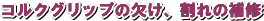 本来は、新しいコルクへの張替え・・と言った工法が取られるべきなのですが、費用対効果の意味合いで「補修」といった選択肢もあります。